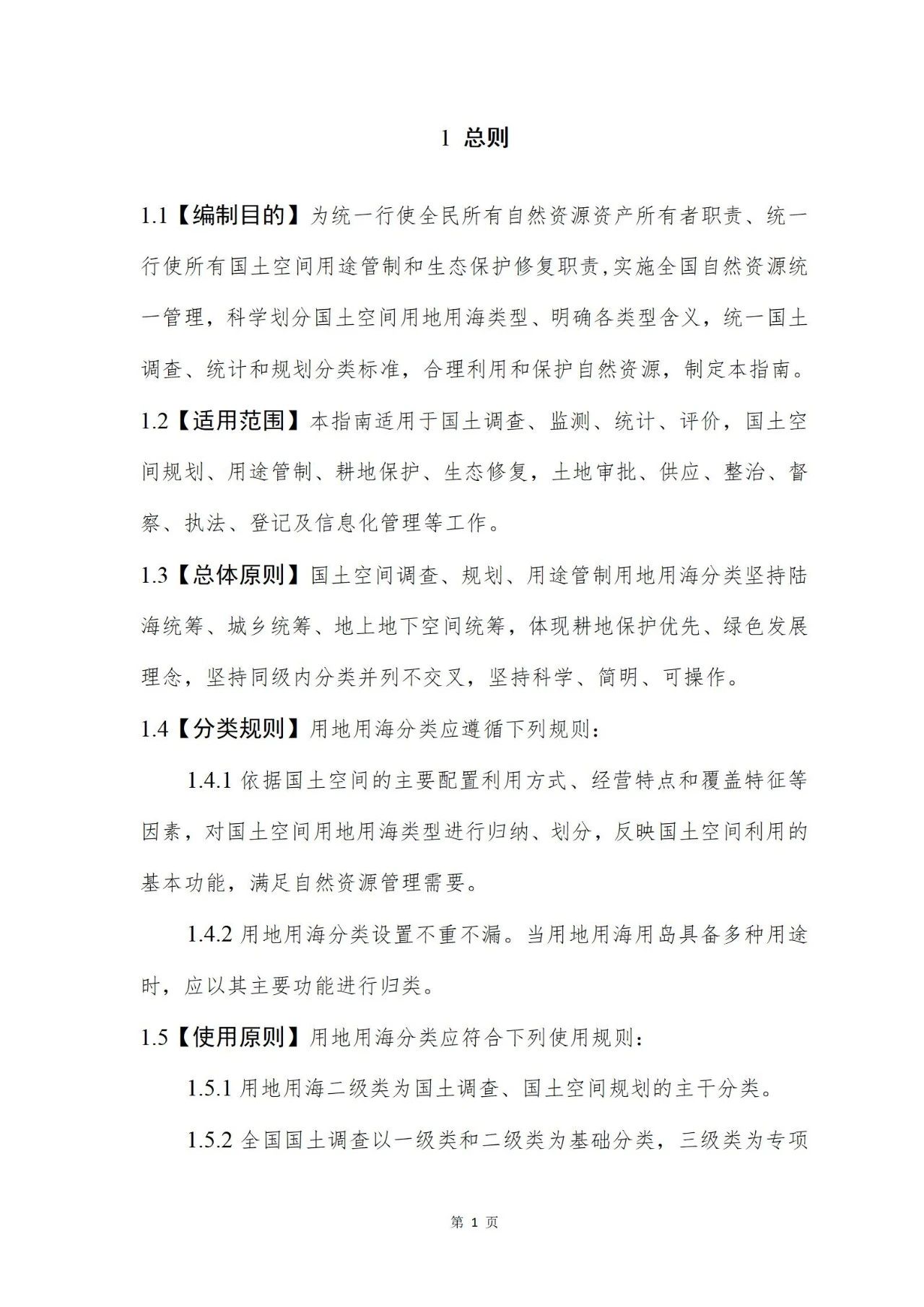 自然資源部關(guān)于印發(fā)《國土空間調(diào)查、規(guī)劃、用途管制用地用海分類指南》的通知