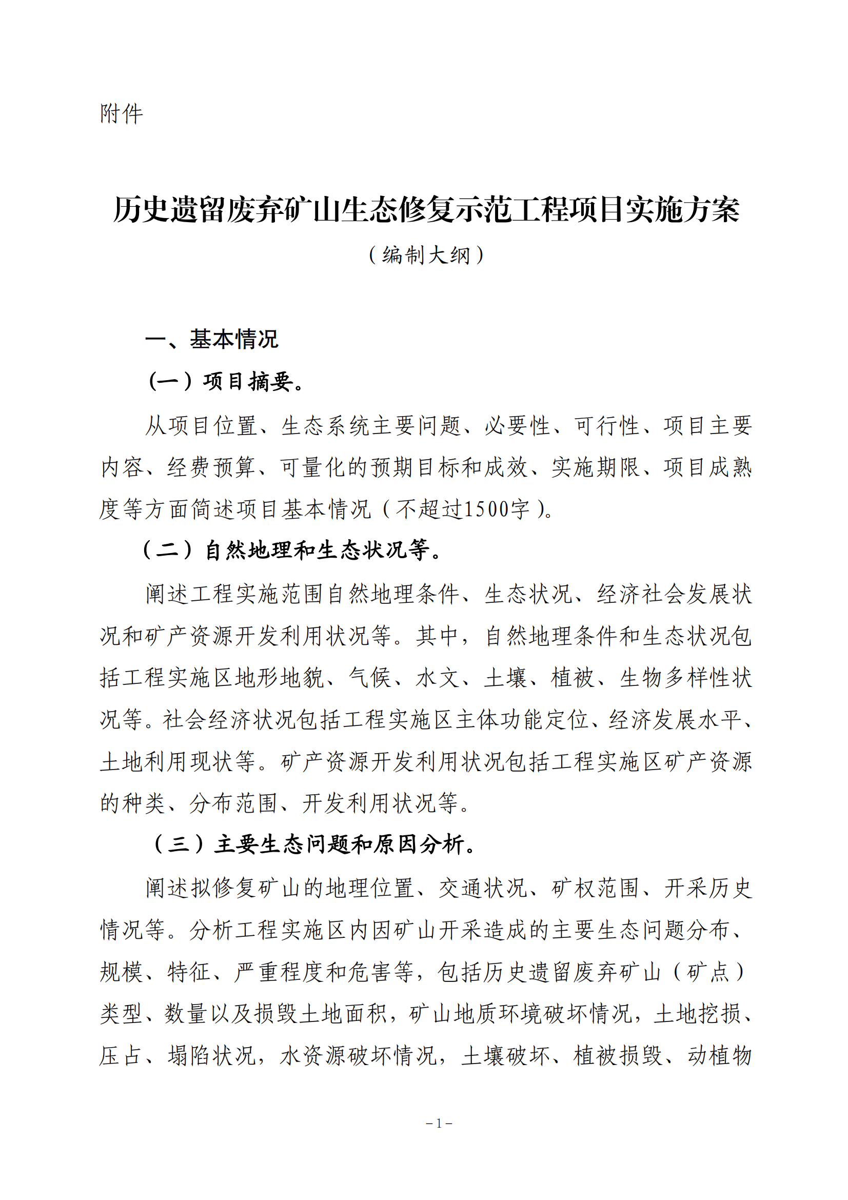 附件:歷史遺留廢棄礦山生態(tài)修復示范工程項目實施方案(編制大綱)