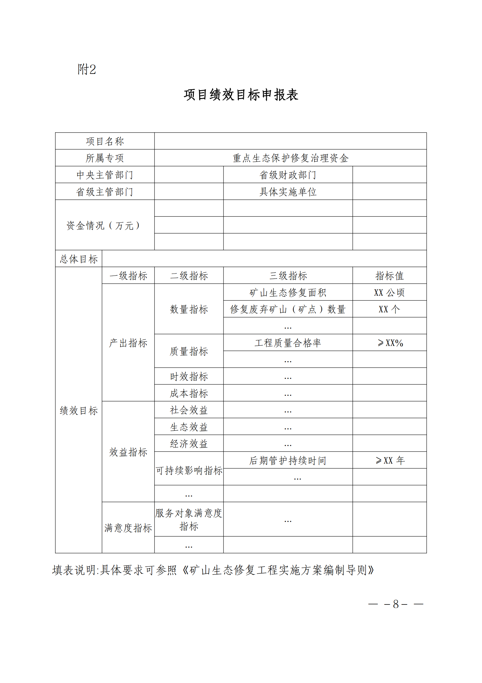 ?。ㄋ模┥陥笪募堄?025年4月30日前,經(jīng)省級人民政府批準同意后由省級財政、自然資源主管部門聯(lián)合行文報送財政部、自然資源部。申報文件應附項目實施方案(編制大綱見附件)、中央對地方專項轉移支付項目績效目標申報表、平面規(guī)劃圖、項目區(qū)域內(nèi)歷史遺留廢棄礦山圖斑數(shù)據(jù)等(含全部電子文檔)。申報材料應簡明扼要、簡便裝訂,避免繁瑣冗長、過度包裝。
