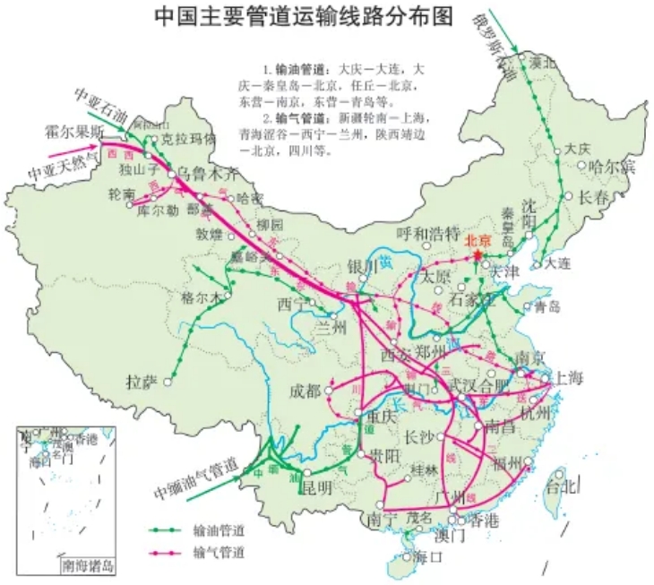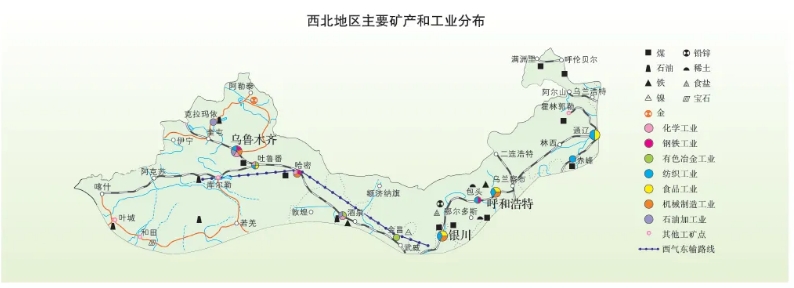 天然氣:四川盆地、鄂爾多斯、新疆(西氣東輸工程)