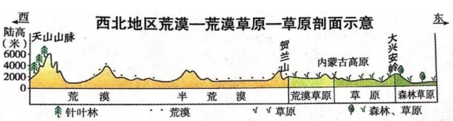 范圍:內(nèi)蒙古高原、黃土高原、云貴高原、四川盆地等(海拔1000-2000米)