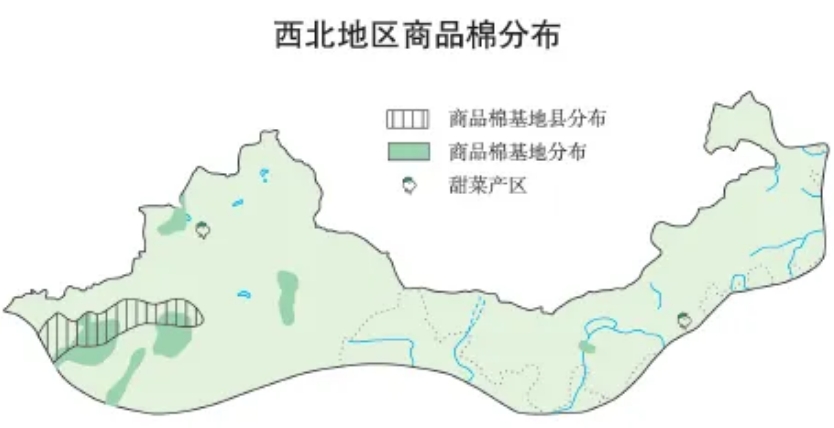 棉花:新疆(占全國90%產(chǎn)量)、黃河棉區(qū)
