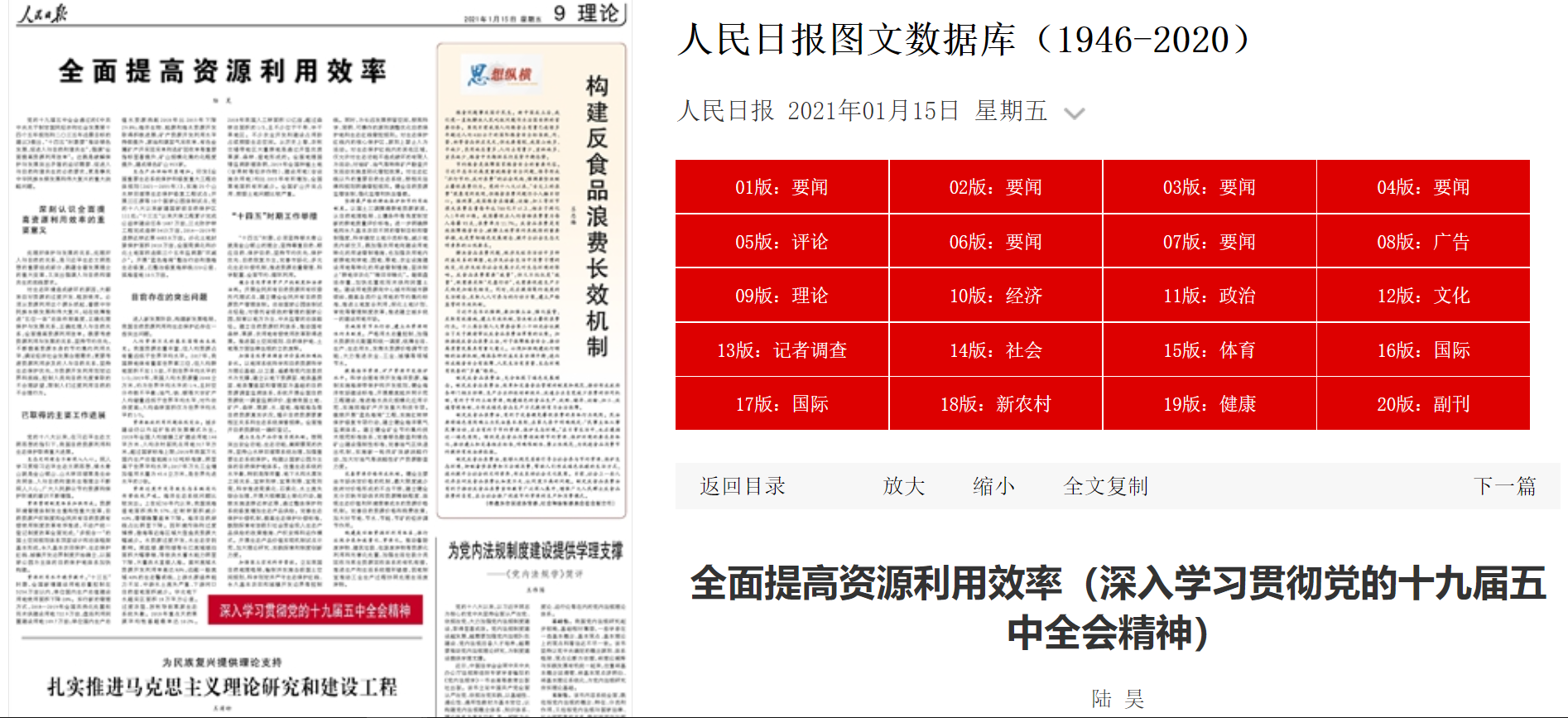 黨的十九屆五中全會通過的《中共中央關(guān)于制定國民經(jīng)濟(jì)和社會發(fā)展第十四個五年規(guī)劃和二〇三五年遠(yuǎn)景目標(biāo)的建議》提出,“十四五”時期要“推動綠色發(fā)展,促進(jìn)人與自然和諧共生”,強(qiáng)調(diào)“全面提高資源利用效率”。這既是破解保護(hù)與發(fā)展突出矛盾的迫切需要、促進(jìn)人與自然和諧共生的必然要求,更是事關(guān)中華民族永續(xù)發(fā)展和偉大復(fù)興的重大戰(zhàn)略問題。