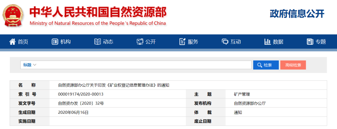 自然資源部辦公廳關(guān)于印發(fā)《礦業(yè)權(quán)登記信息管理辦法》的通知